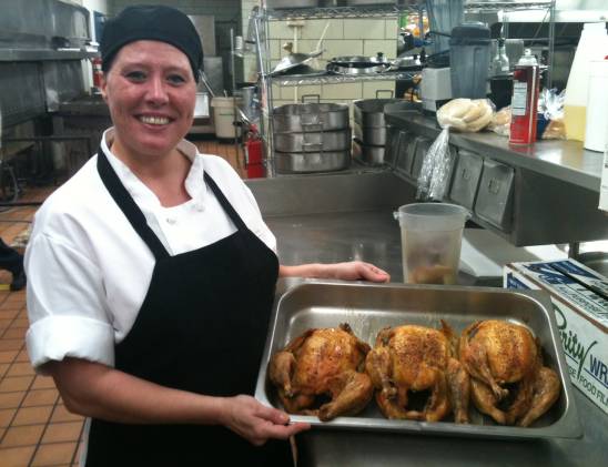 Reducing waste is another approach to offsetting the higher food costs. McClanahan explains, “Over the years we keep noticing that our food wastes are similar to what we see wasted on plates.” With a computer software program called LeanPath, the school kitchen has reduced the amount of food waste they generate by 30% of what it was prior to the program’s inception in March 2012. The system encourages kitchen staff to take responsibility for items being thrown away (or in this case composted) by requiring staff to track of every item discarded. Computers in the kitchen now have a touch-screen menu where staff record the food, amount, and reason for each throw-away item, which can then help them chart which items are contributing to the most kitchen waste and why. Cook-to order style stations also cut down on waste by avoiding cooking excess food.